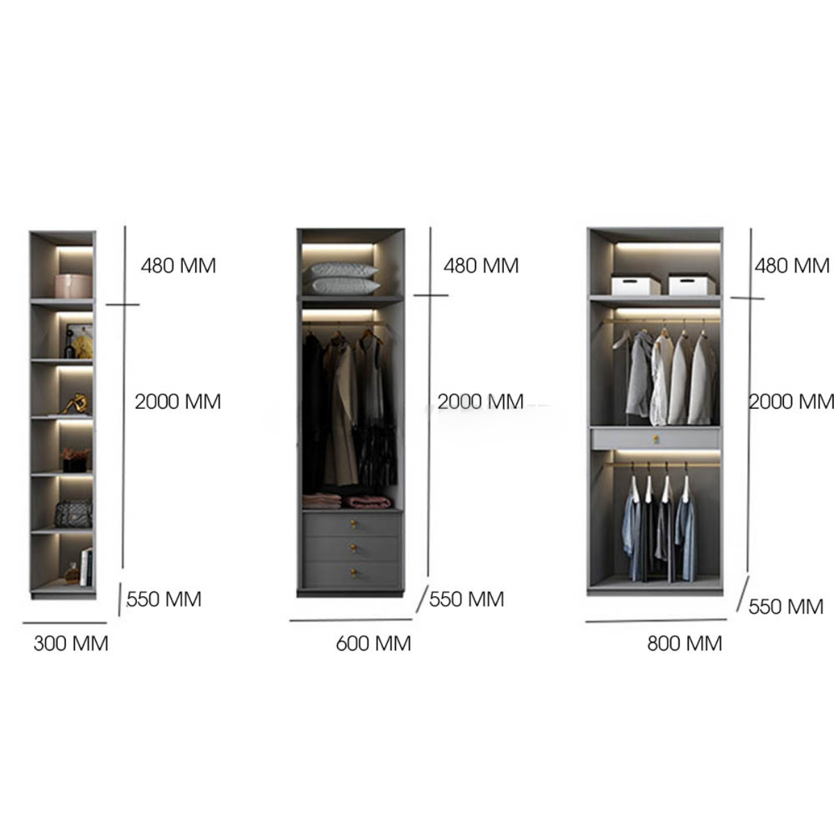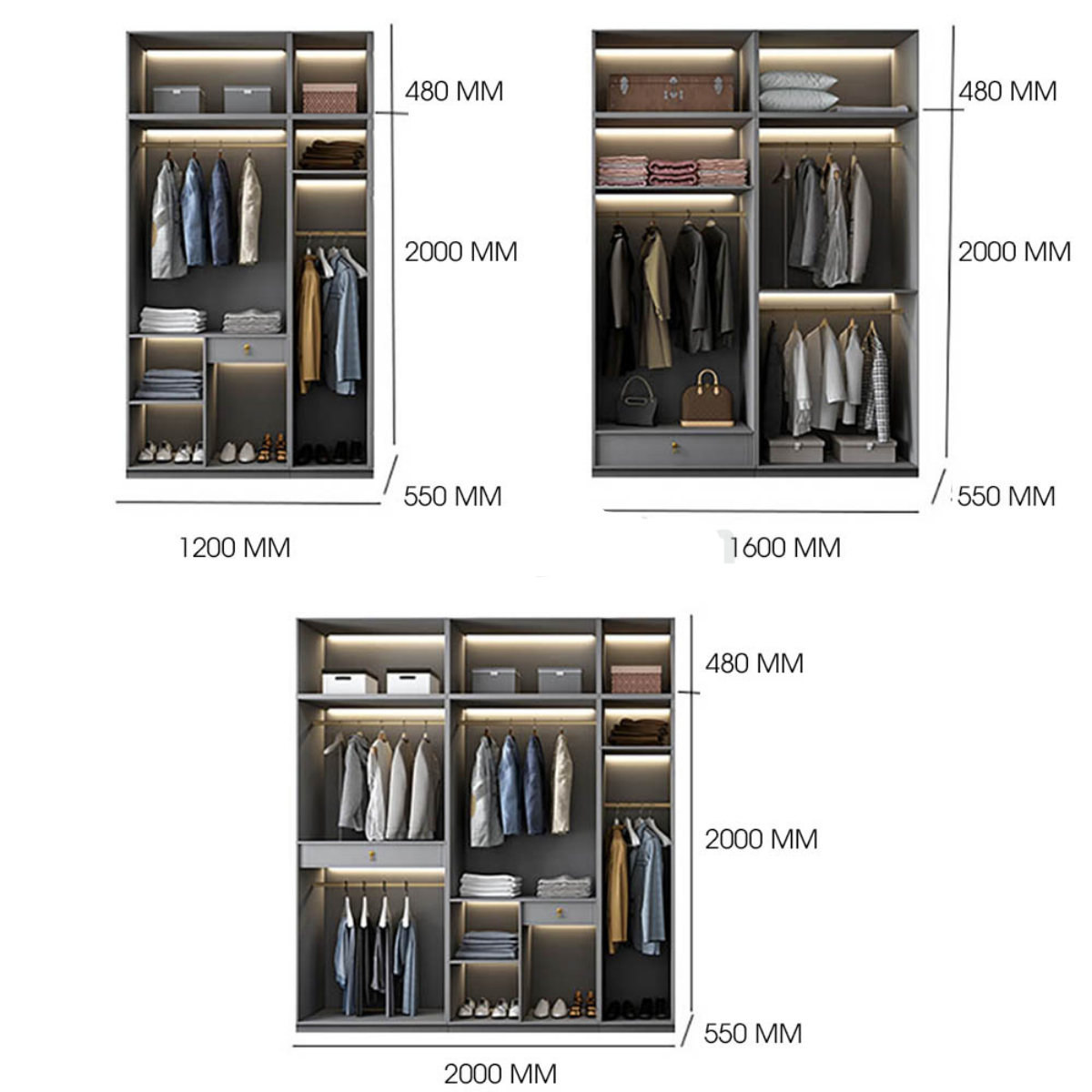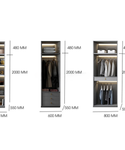 Chia ngăn đợt, móc áo, móc quần, áo dài, hộc kéo… tùy theo nhu cầu sử dụng.